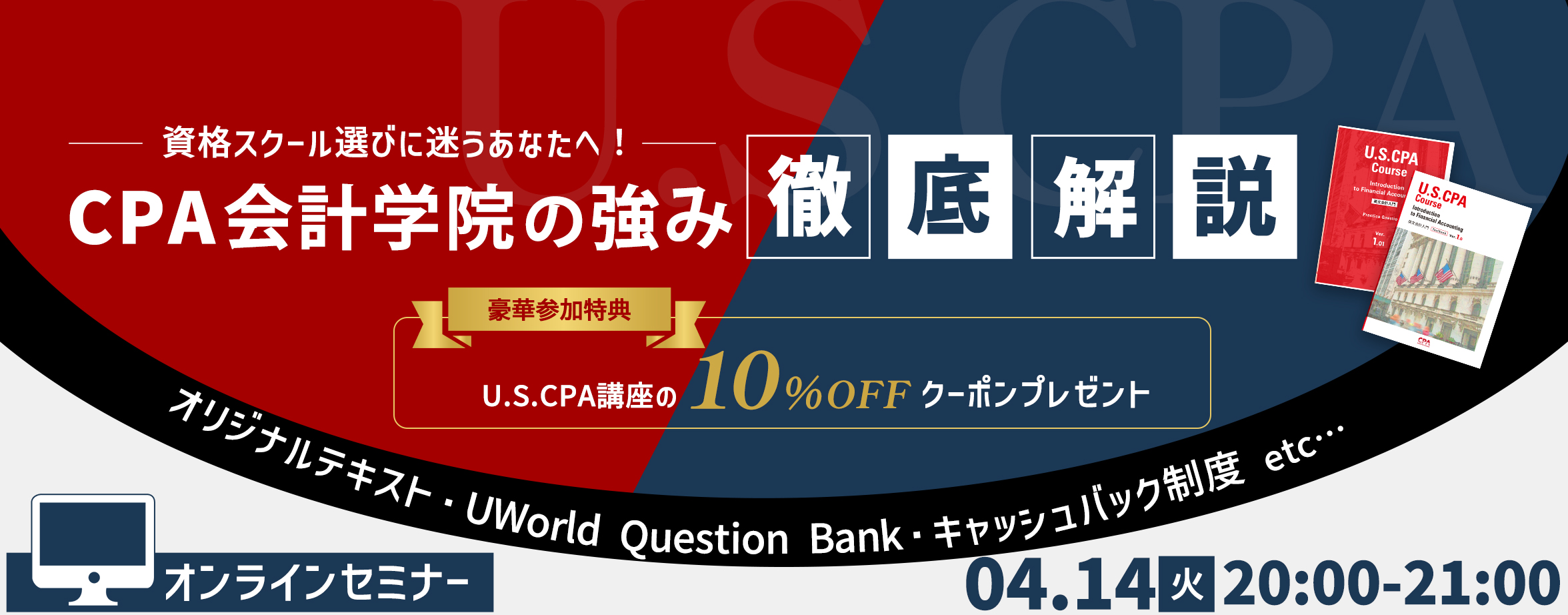 日本の公認会計士講座で培ったノウハウを詰め込んだ、CPAのUSCPA講座。CPAクオリティの徹底した受講生サポートで、あなたをUSCPA合格に導きます。
