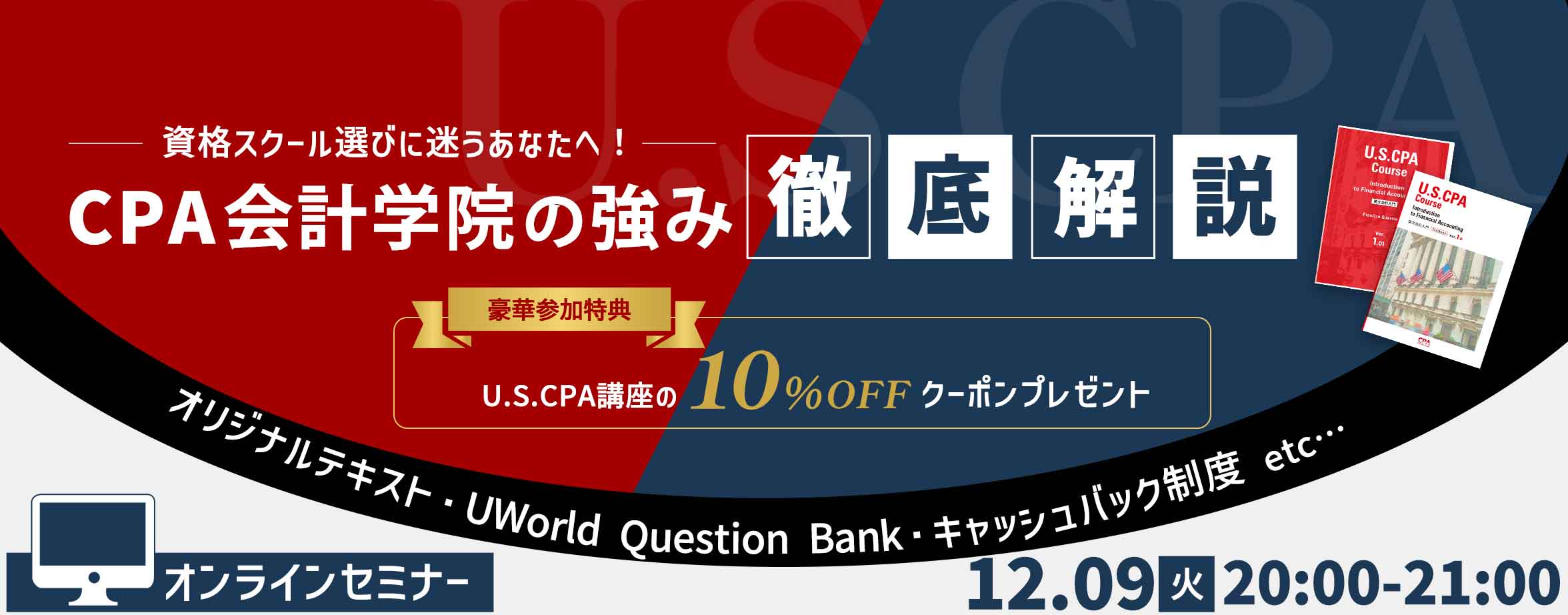 日本の公認会計士講座で培ったノウハウを詰め込んだ、CPAのUSCPA講座。CPAクオリティの徹底した受講生サポートで、あなたをUSCPA合格に導きます。
