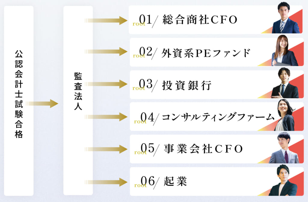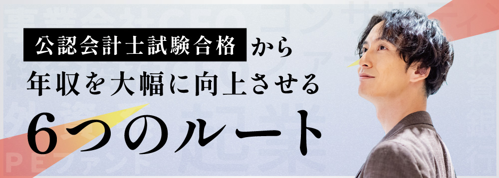 公認会計士試験合格後、年収を大幅に上昇させるには、主に以下6つのルートが挙げられます。