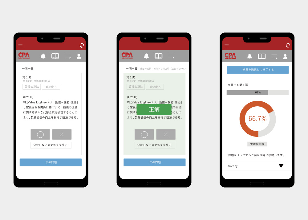CPAの良かった点は、学習内容が重要性や典型度に基づいてランク分けされていることです。この仕組みにより、学習すべき内容の優先順位を明確にし、効率的に理解や暗記を進めることができました。膨大な範囲を効果的に絞り込むことで、限られた時間を最大限に活用できた点が非常に助かりました。