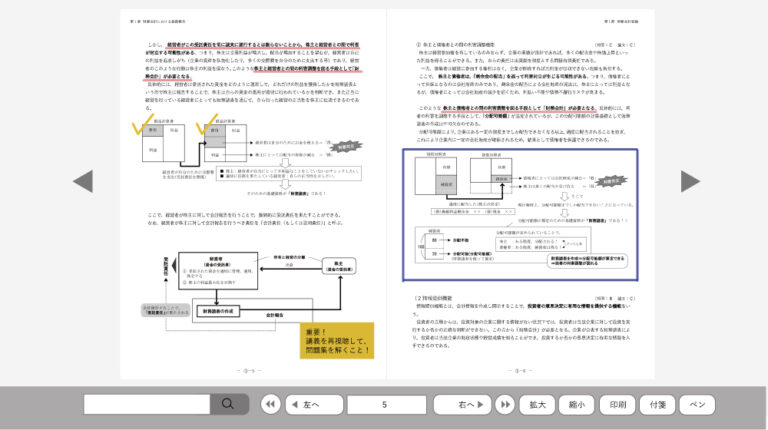 Webテキストは、Web上で教材を閲覧することができるアプリです。これまでのPDFのダウンロードとは違い、メモ付箋やラインマーカーを引くことができます。さらに全テキスト文字を一括検索する機能を備えているので、索引や思い出したい論点をすぐに探し出すことができる等、効率的な学習に強力に役立つ機能が付加されています。