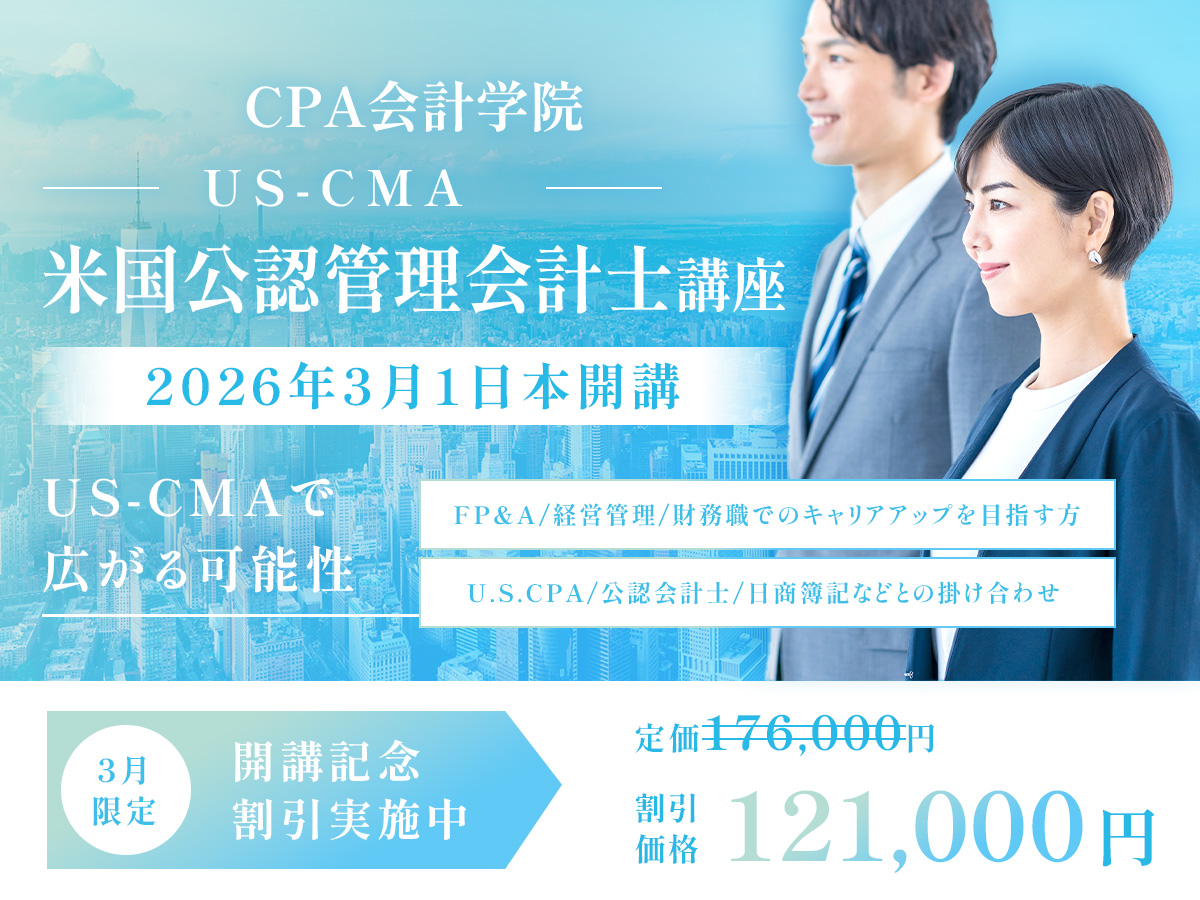 米国公認管理会計士(US-CMA)講座の開講を記念し、3月末までの期間限定で30%超の割引価格でご提供します。