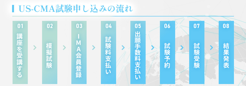 USCMAの学習を進め準備が整ったら、次はUSCMA試験の申し込みをしましょう。USCMA試験の申し込み・資格取得は、以下の流れで進めます。