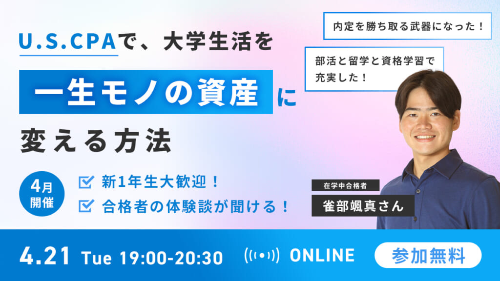 - 20:30~21:30USCPA講座 無料説明会を予約する