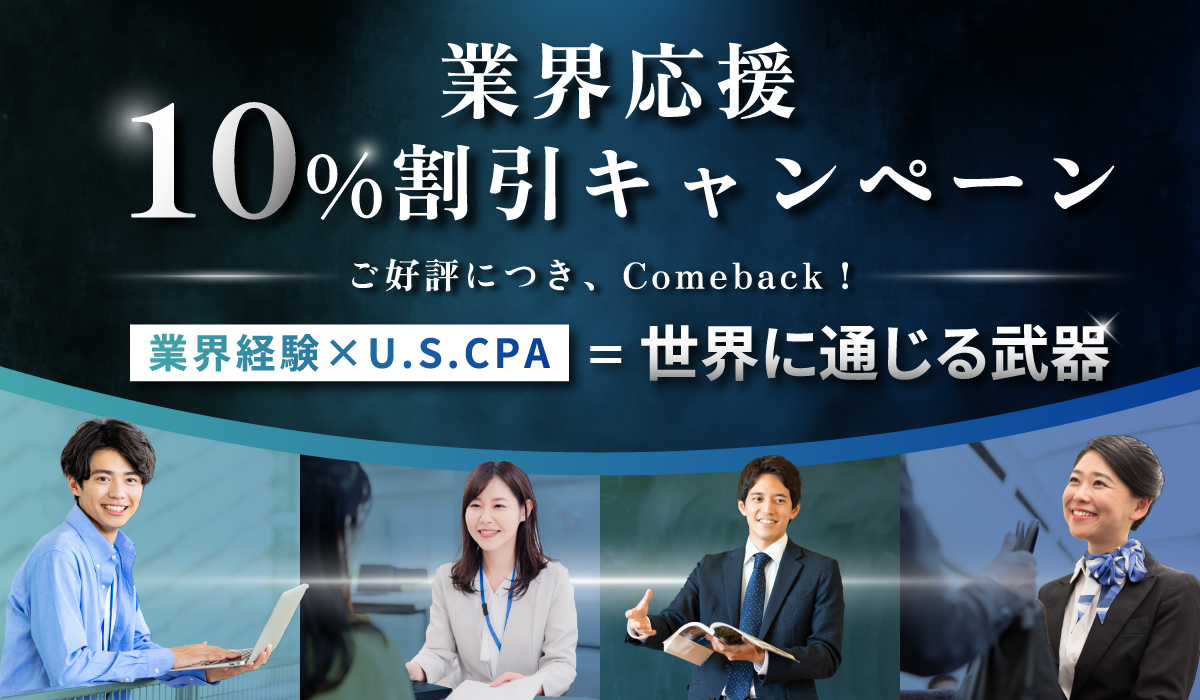 業界応援割引キャンペーンでUSCPA講座を10%OFFでご提供します!
