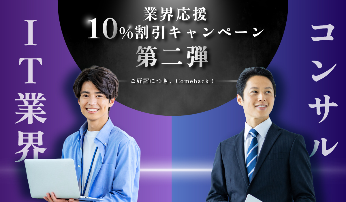 第二弾の対象は、「IT業界」と「コンサルティング業界」にお勤めの皆様!ITとコンサルは、常に変化し続ける時代の中で最先端を走る業界。
