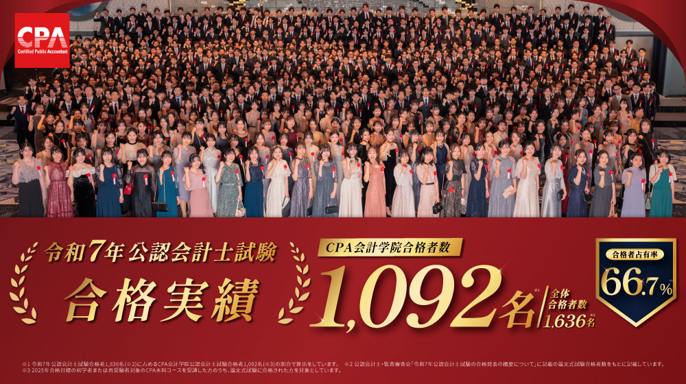 ※1 令和7年公認会計士試験合格者1,636名(※2)に占めるCPA会計学院公認会計士試験合格者1,092名(※3)の割合で算出をしています。