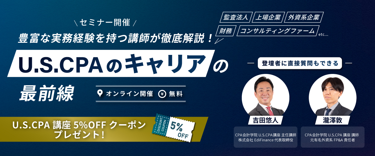 さらに豪華参加特典として、USCPA講座が定価から5%オフになるクーポンをプレゼント中!